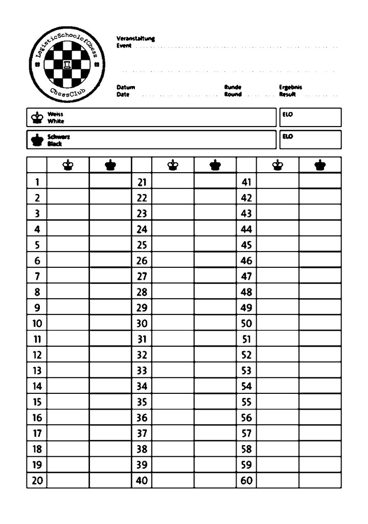 يقوم كلا اللاعبين بتعبئة البيانات الخاصة بهما في أعلى الورقة قبل المباراة، وبعد انتهاء المباراة يُشير اللاعبان إلى نتيجة المباراة على الورقة (تشير إلى 1 - 0 ، 1/2 - 1/2 أو 0 - 1 و يقوم بإحاطة بخط مغلق لاسم الفائز أو كلا الاسمين في حالة التعادل)، وبعد ذلك يقوم اللاعبان بالتوقيع على كِلا الورقتين و تسلم الأصلية للحكم ويحتفظان بنسختهما.