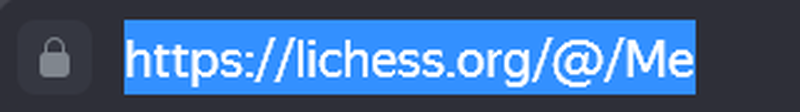 Далее я решил зайти на его аккаунт но не получилось! Когда я нажал на его никнейм выходил мой же аккаунт потому что ссылка на его профиль https://lichess.org/@/Me , а когда открываешь такую ссылку у каждого пользователя выходит свой аккаунт.