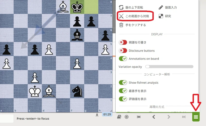 その後、「この局面から対戦」をクリックします。