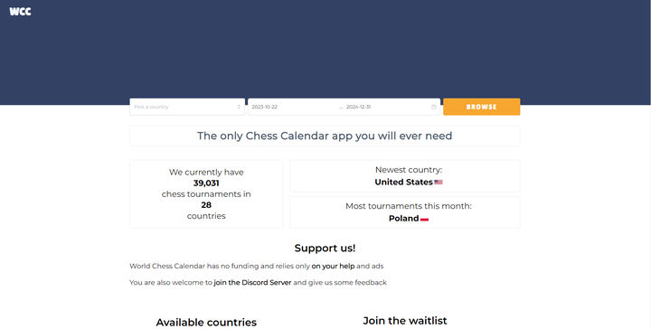 Should it be so hard to find OTB tournaments in your country and abroad?Hello everyone! Today I'm glad to present the new version of our new website - World Chess Calendar.